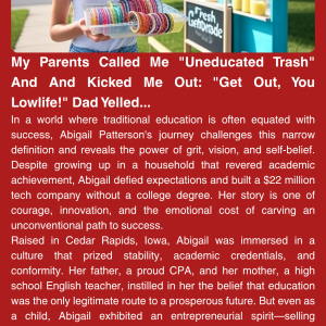 In a world where traditional education is often equated with success, Abigail Patterson’s journey challenges this narrow definition and reveals the power of grit, vision, and self-belief….